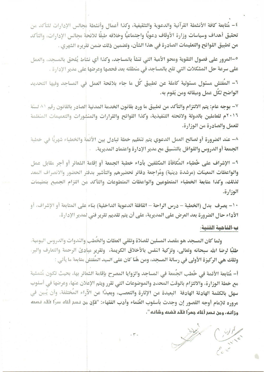 * مُتَابَعَةُ الْأَئِمَّةِ فِي خُطَبِ الْجُمُعَةِ بِحَيْثُ تَكُونُ متمشية مَعَ خُطَّةِ الْوِزَارَةِ.