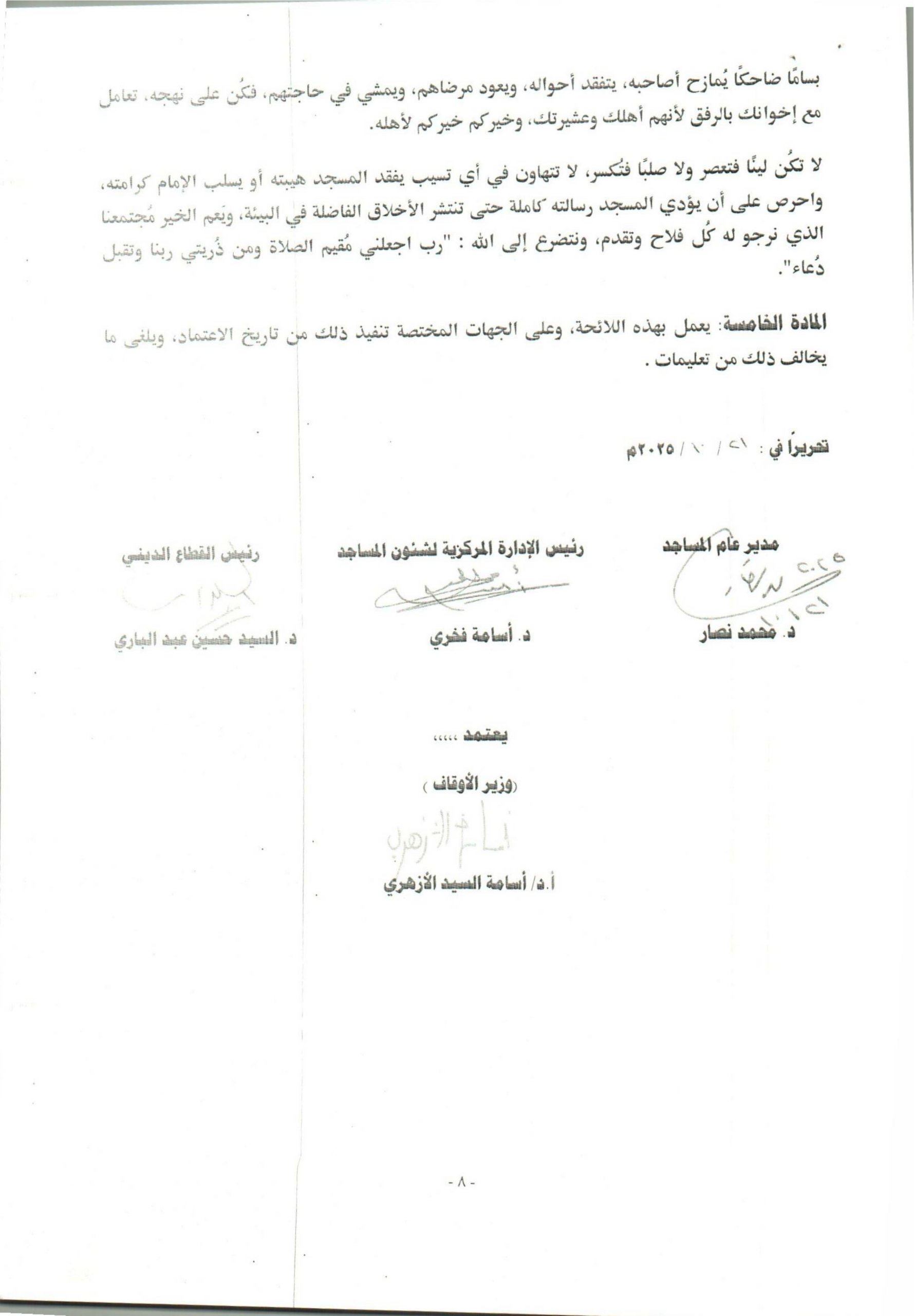 اصدر الأستاذ الدكتور أسامة الأزهري وزير الأوقاف تعليماته بتعميم اللائحة الجديدة للتفيش بالأوقاف