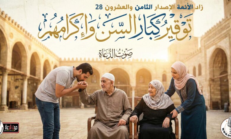 زاد الأئمة (28) : وزارة الأوقاف تعلن رسميا عن زاد الأئمة والخطباء.. الدليل الإرشادي لـ خطبة الجمعة القادمة حول : تَوْقِيرُ كِبَارِ السِّنِّ وَإِكْرَامُهُمْ ، بتاريخ الجمعة ٧ جمادى الآخرة ١٤٤٧هـ ٢٨-١١-٢٠٢٥م.